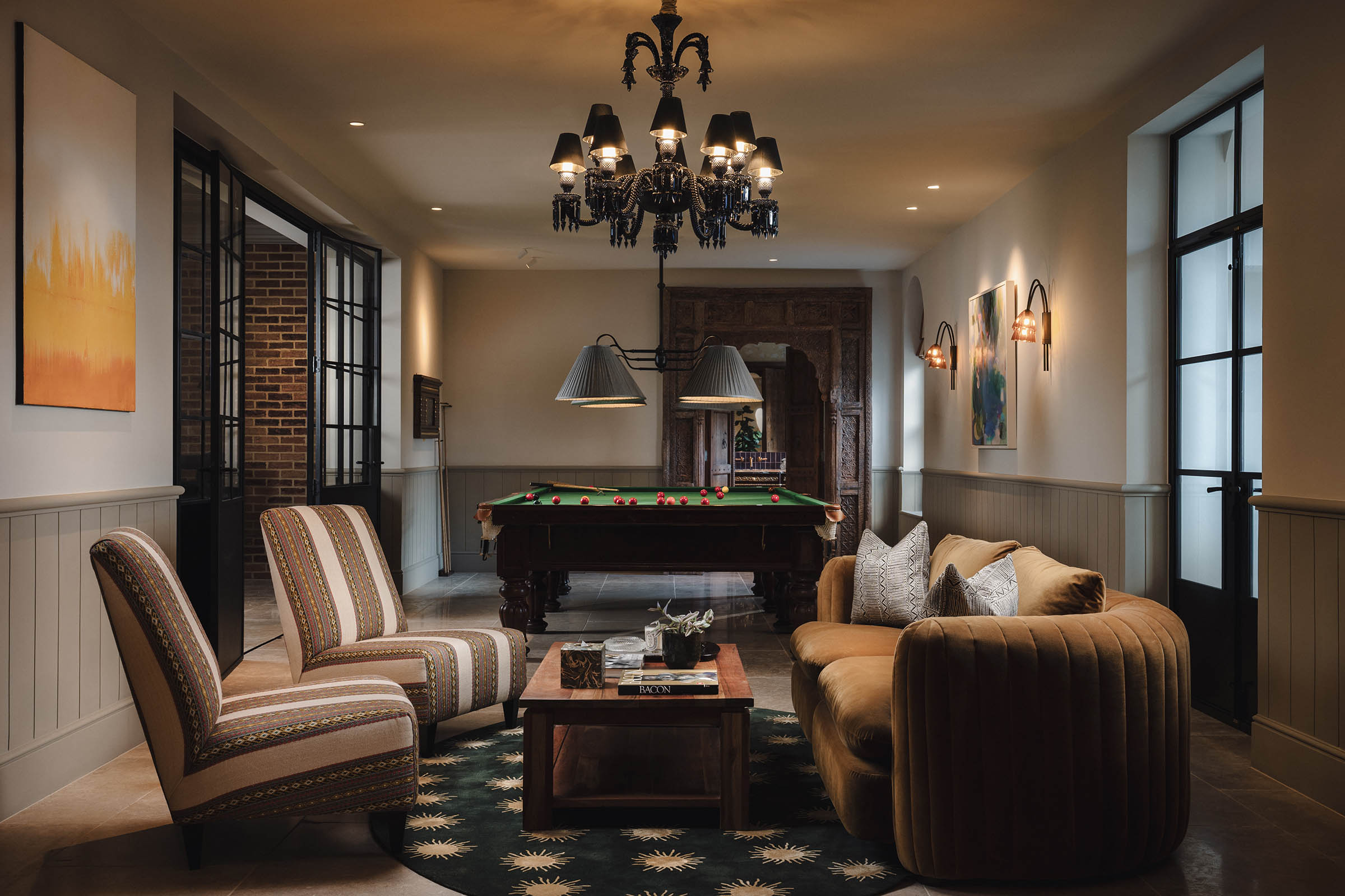 A palette of warm neutrals layered with classical heritage colours brought depth and cohesion throughout the home. All spaces were seamlessly connected to one another and to the surrounding gardens, with interiors designed to frame views and strengthen the relationship between inside and out.